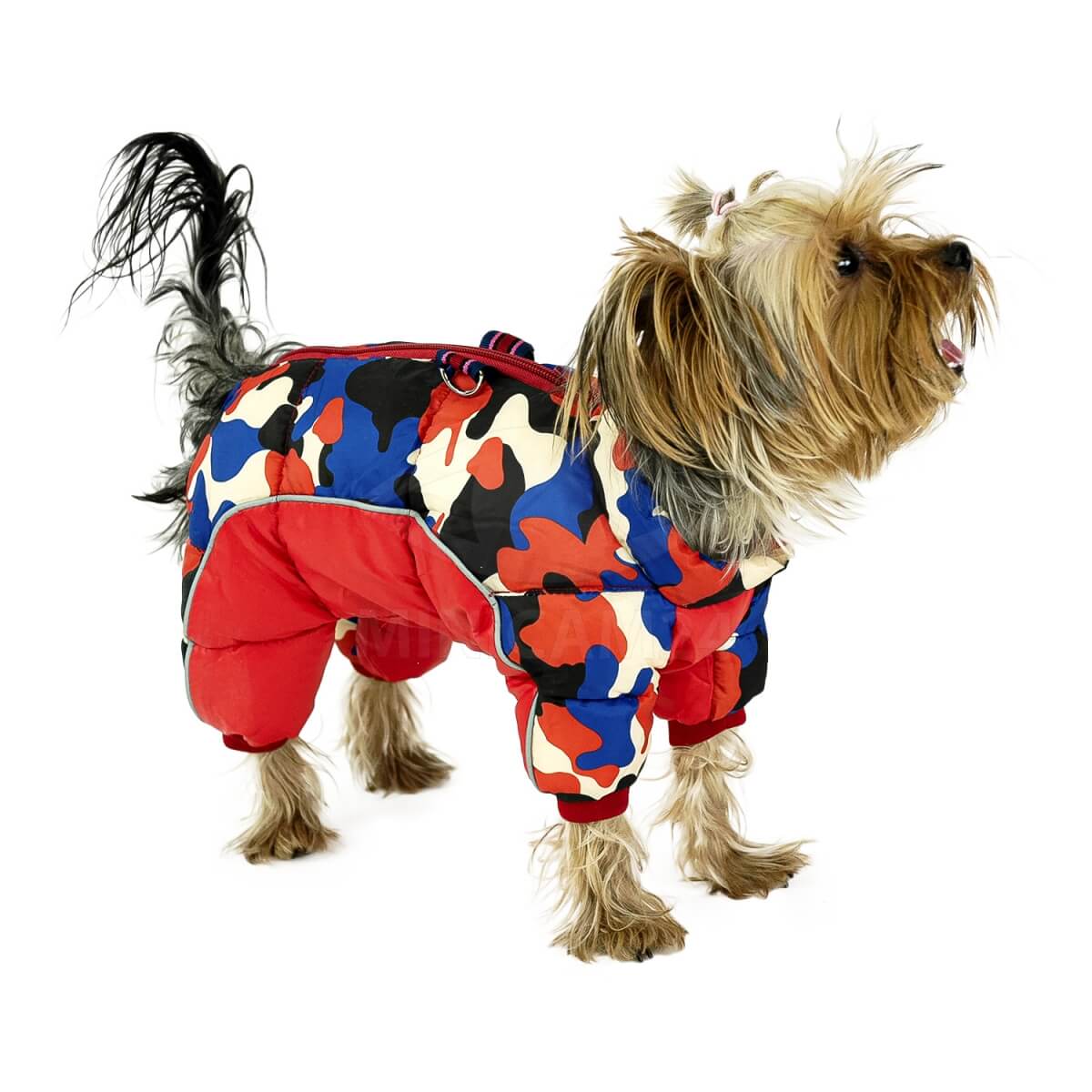 Зимний комбинезон для собак Chak красный 16 XL хорошо держит тепло и отводит влагу. Костюм выполнен из водонепроницаемого полиэстера, в качестве внутренней подкладки используется хлопок. Благодаря продуманному крою комбинезон не сковывает движений животного, собака не чувствует дискомфорта во время активных игр. Костюм легко надевается и снимается, застегивается на молнию. Допускается стирка в щадящем режиме.